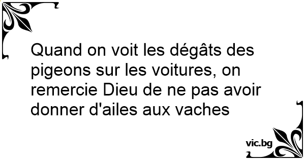 Quand on voit les dégâts des pigeons sur les voitures, on remercie Dieu de ne pas avoir donner d'ailes aux vaches