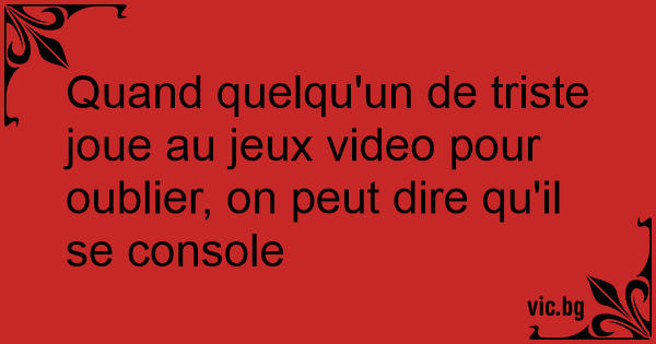 Quand quelqu'un de triste joue au jeux video pour oublier, on peut dire qu'il se console