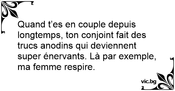 Quand t’es en couple depuis longtemps, ton conjoint fait des trucs anodins qui deviennent super énervants. Là par exemple, ma femme respire.
