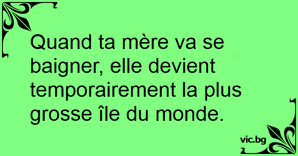 Quand ta mère va se baigner, elle devient temporairement la plus grosse île du monde.