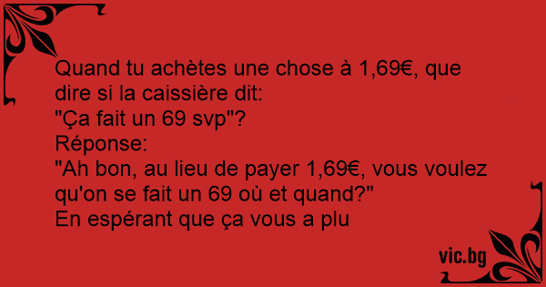 "Ça fait un 69 svp"?