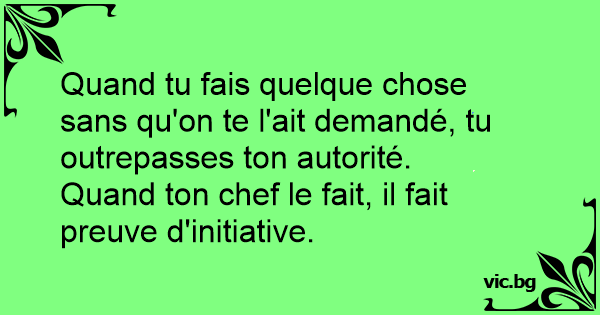 Quand tu fais quelque chose sans qu'on te l'ait demandé, tu outrepasses ton autorité.