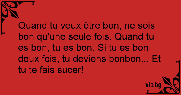 Quand tu veux être bon, ne sois bon qu'une seule fois. Quand tu es bon, tu es bon. Si tu es bon deux fois, tu deviens bonbon... Et tu te fais sucer!