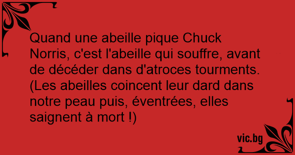 Quand une abeille pique Chuck Norris, c'est l'abeille qui souffre, avant de décéder dans d'atroces tourments.