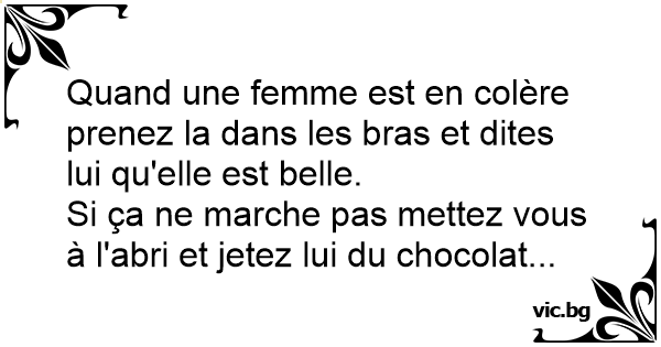 Quand une femme est en colère prenez la dans les bras et dites lui qu'elle est belle.
