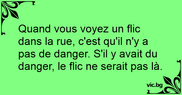 Quand vous voyez un flic dans la rue, c'est qu'il n'y a pas de danger. S'il y avait du danger, le flic ne serait pas là.