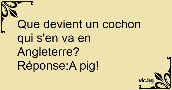Que devient un cochon qui s'en va en Angleterre?
