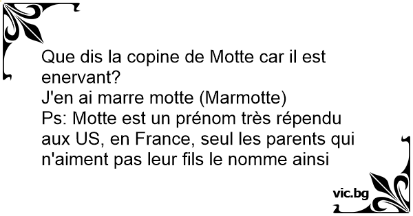 Ps: Motte est un prénom très répendu aux US, en France, seul les parents qui n'aiment pas leur fils le nomme ainsi