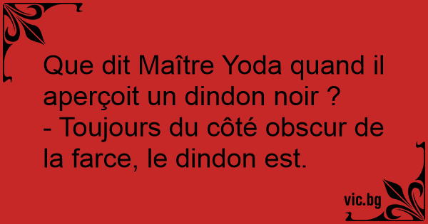 Que dit Maître Yoda quand il aperçoit un dindon noir ?