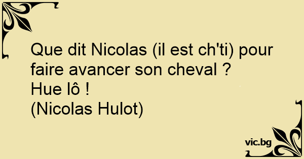 Que dit Nicolas (il est ch'ti) pour faire avancer son cheval ?