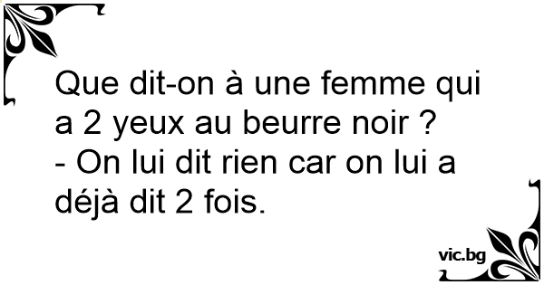 Que dit-on à une femme qui a 2 yeux au beurre noir ?