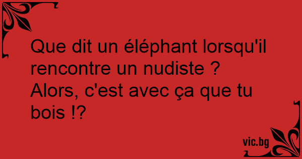 C'est un mec, tout nu dans la savane. Il marche. Ledit mec vient à rencontrer un éléphant. Un mâle. L'éléphant regarde le mec sous toutes les coutures. ça dure un bon moment et enfin... L'éléphant...