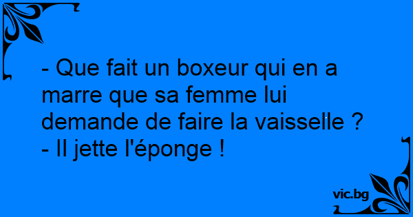 - Que fait un boxeur qui en a marre que sa femme lui demande de faire la vaisselle ?