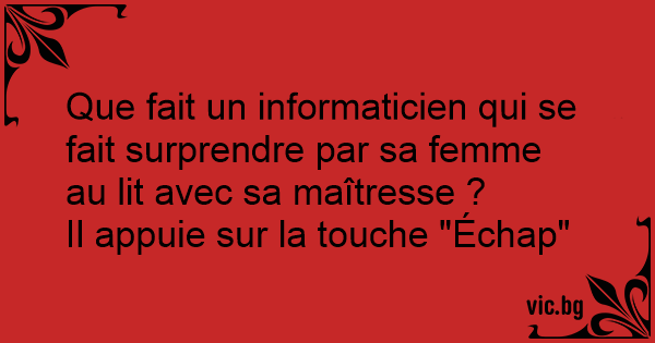 Que fait un informaticien qui se fait surprendre par sa femme au lit avec sa maîtresse ?