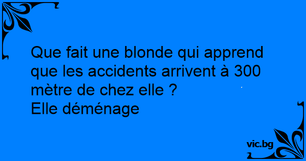 Que fait une blonde qui apprend que les accidents arrivent à 300 mètre de chez elle ?