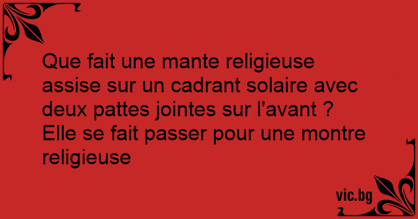Que fait une mante religieuse assise sur un cadrant solaire avec deux pattes jointes sur l'avant ?