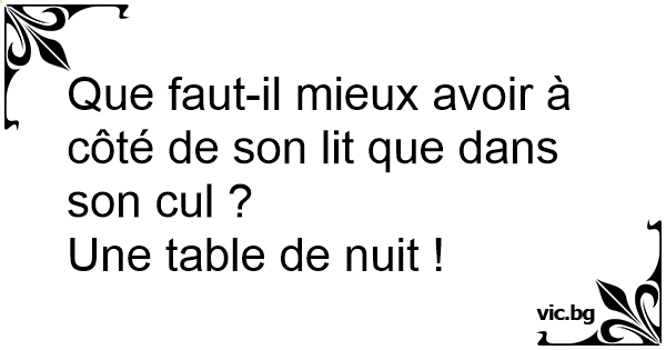 Que faut-il mieux avoir à côté de son lit que dans son cul ?