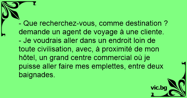 - Que recherchez-vous, comme destination ? demande un agent de voyage à une cliente.