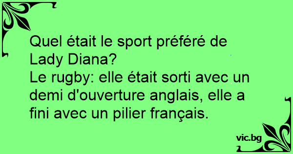 Le rugby: elle était sorti avec un demi d'ouverture anglais, elle a fini avec un pilier français.