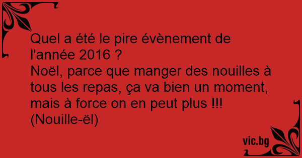 Noël, parce que manger des nouilles à tous les repas, ça va bien un moment, mais à force on en peut plus !!! (Nouille-ël)