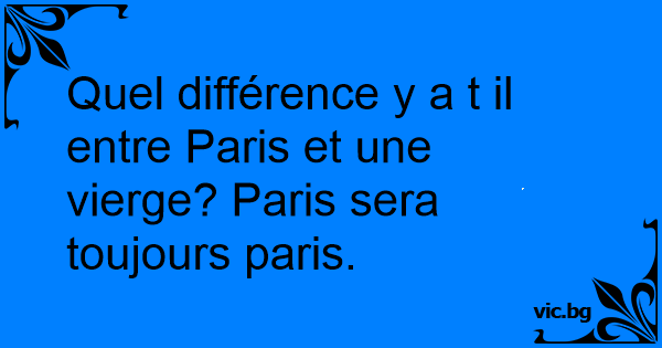 Quel différence y a t il entre Paris et une vierge? Paris sera toujours paris.