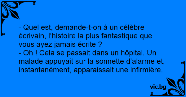 - Oh ! Cela se passait dans un hôpital. Un malade appuyait sur la sonnette d’alarme et, instantanément, apparaissait une infirmière.
