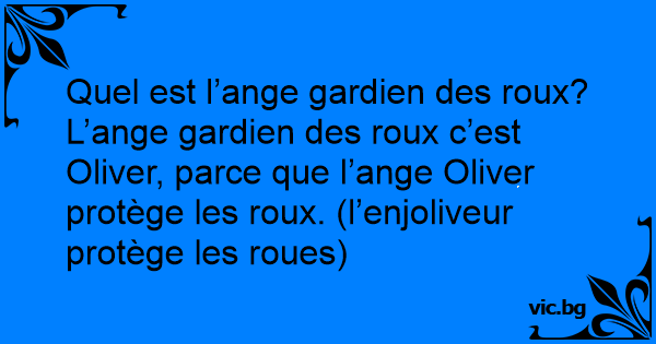 L’ange gardien des roux c’est Oliver, parce que l’ange Oliver protège les roux. (l’enjoliveur protège les roues)