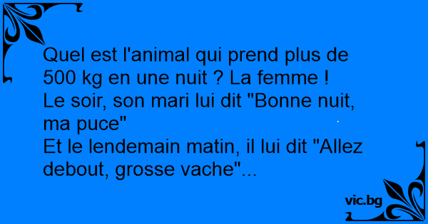 Quel est l'animal qui prend plus de 500 kg en une nuit ? La femme !