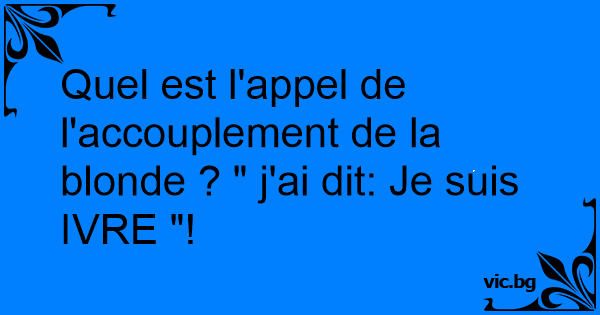 Quel est l'appel de l'accouplement de la blonde ? " j'ai dit: Je suis IVRE "!
