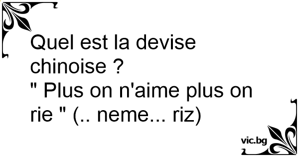 Quel est la devise chinoise...