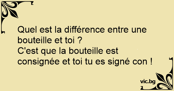 C'est que la bouteille est consignée et toi tu es signé соn !