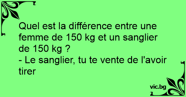 Quel est la différence entre une femme de 150 kg et un sanglier de 150 kg ?