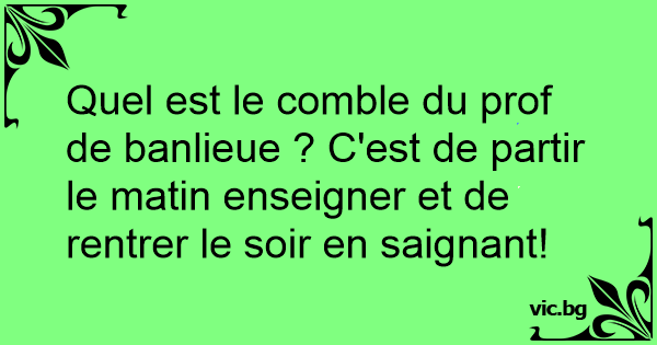 Quel est le comble du prof de banlieue ? C'est de partir le matin enseigner et de rentrer le soir en saignant!