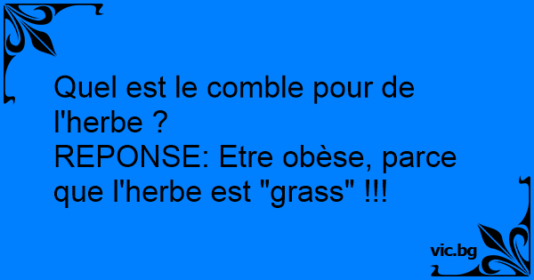 REPONSE: Etre obèse, parce que l'herbe est "grass" !!!