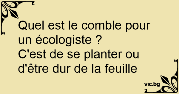 Quel est le comble pour un écologiste ?