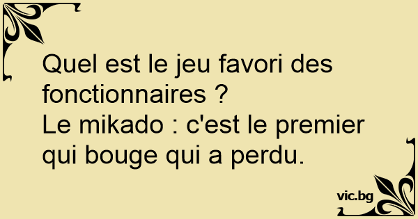 Quel est le jeu favori des fonctionnaires ?<br />Le mikado : c'est le premier qui bouge qui a perdu.
