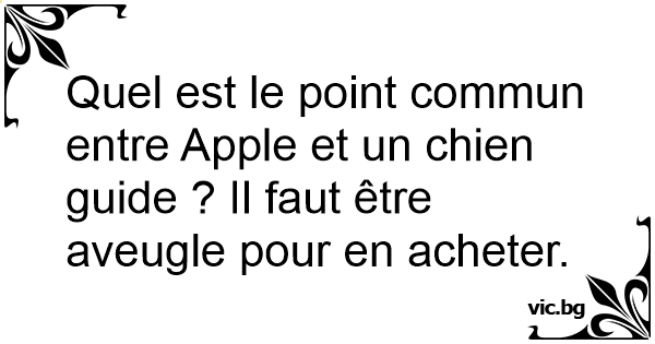 Quel est le point commun entre Apple et un chien guide ? Il faut être aveugle pour en acheter.