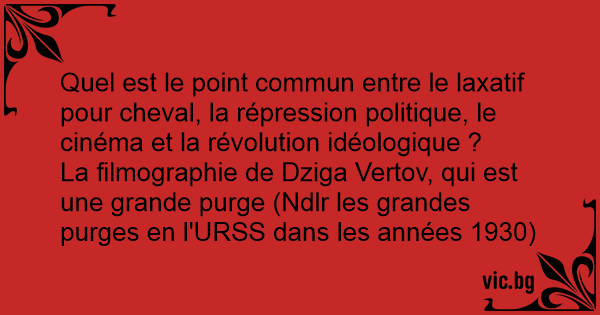 Quel est le point commun entre le laxatif pour cheval, la répression politique, le cinéma et la révolution idéologique ?
