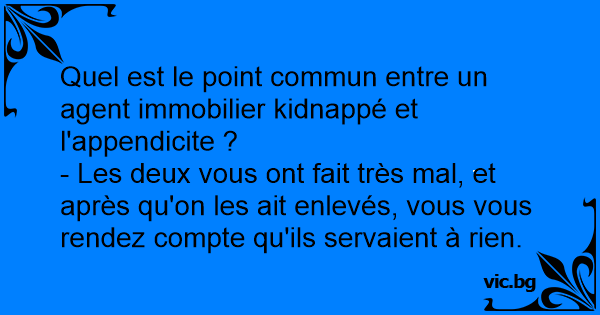 Quel est le point commun entre un agent immobilier kidnappé et l'appendicite ?