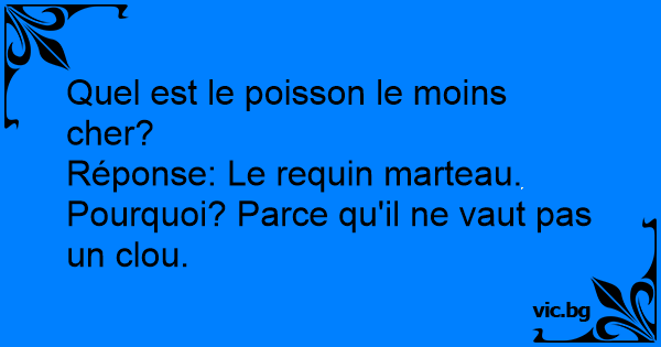 Réponse: Le requin marteau. Pourquoi? Parce qu'il ne vaut pas un clou.