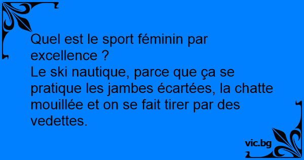 Le ski nautique, parce que ça se pratique les jambes écartées, la сhатте mouillée et on se fait tirer par des vedettes.