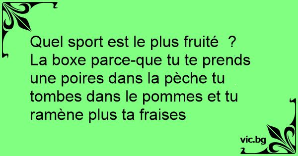 La boxe parce-que tu te prends une poires dans la pèche tu tombes dans le pommes et tu ramène plus ta fraises