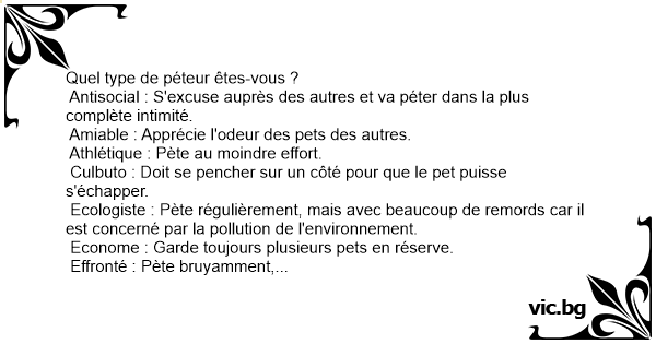 • Antisocial : S'excuse auprès des autres et va péter dans la plus complète intimité.
