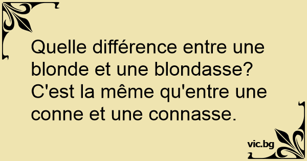 Quelle différence entre une blonde et une blondasse? C'est la même qu'entre une conne et une соnnаssе.