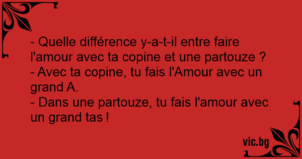 - Quelle différence y-a-t-il entre faire l'amour avec ta copine et une partouze ?