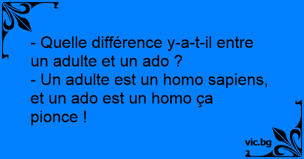 - Un adulte est un hомо sapiens, et un ado est un hомо ça pionce !