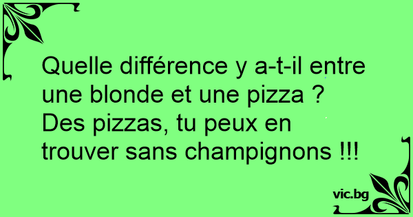 Quelle différence y a-t-il entre une blonde et une pizza ? Des pizzas, tu peux en trouver sans champignons !!!