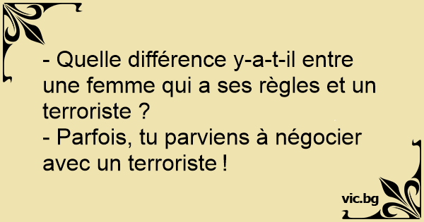 - Quelle différence y-a-t-il entre une femme qui a ses règles et un terroriste ?