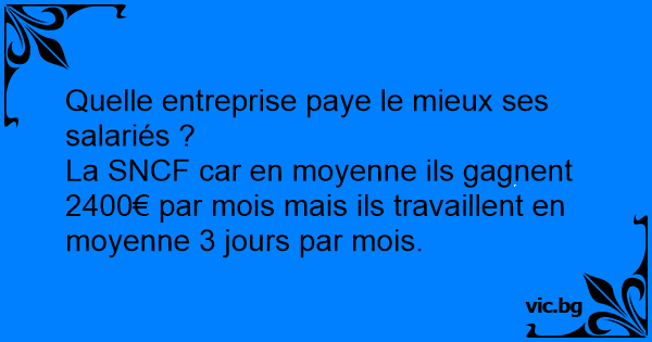 La SNCF car en moyenne ils gagnent 2400€ par mois mais ils travaillent en moyenne 3 jours par mois.