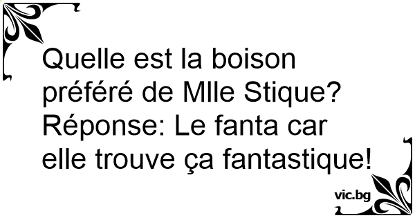 Quelle est la boison préféré de Mlle Stique?